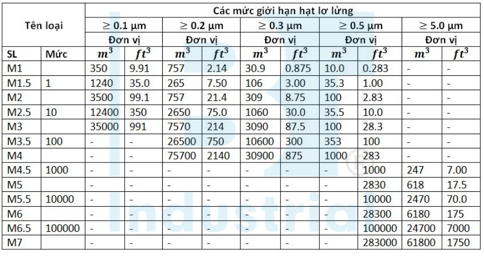 Tiêu chuẩn phòng sạch được biểu thị qua thông số dưới đây: